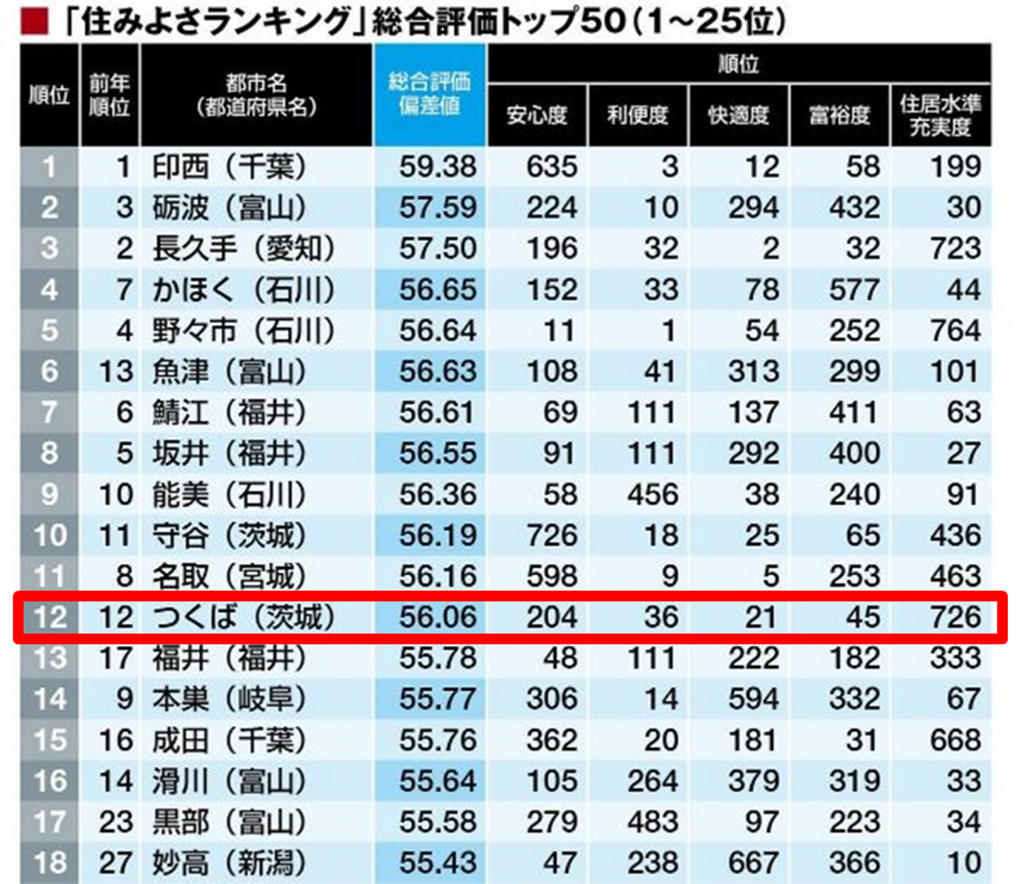 つくばが人気なのは、生活の基盤力の高さが考えられます。