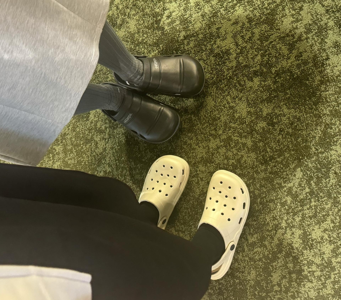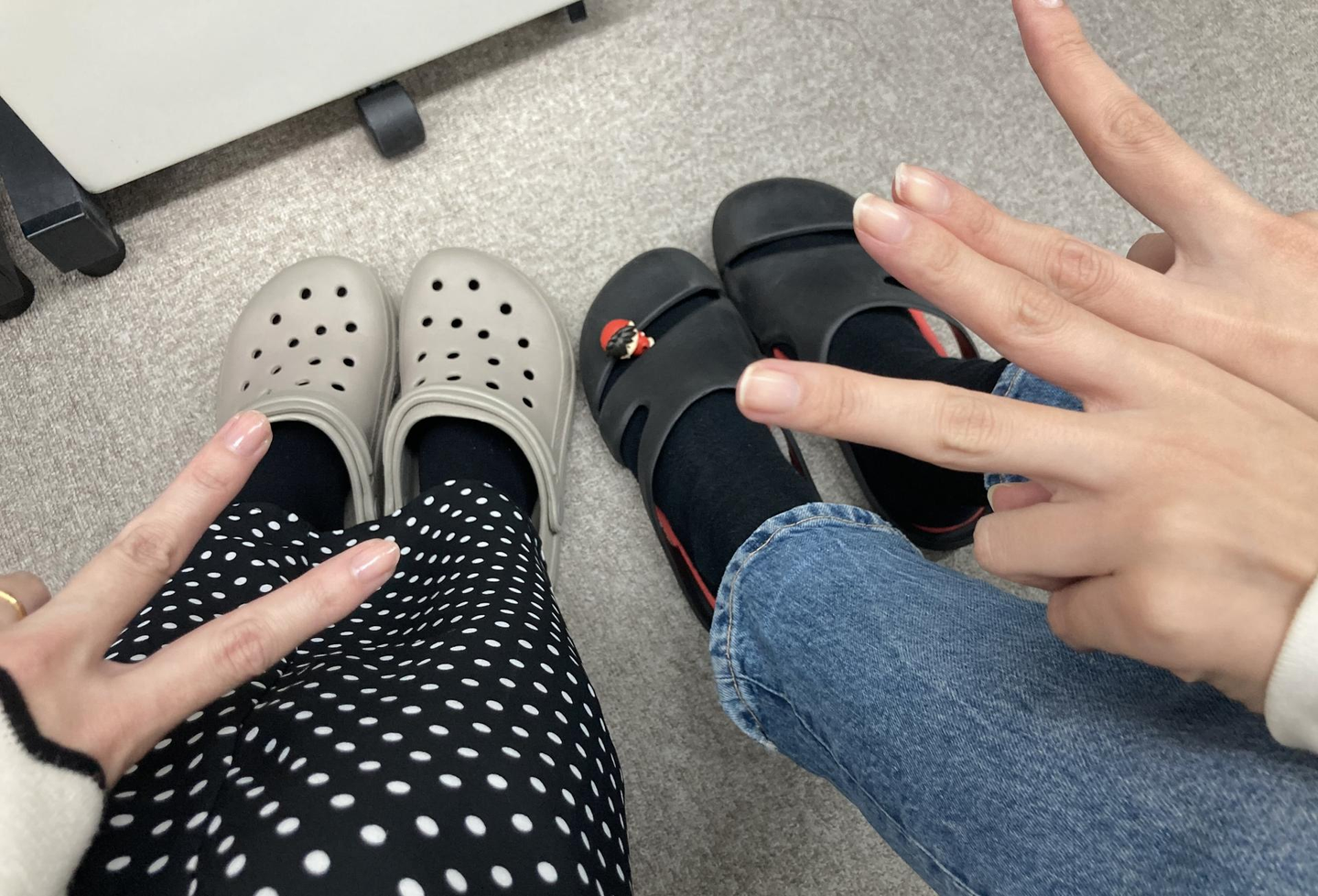 アフターファイブ用に朝ヒールを履いて出社しても、 事務所についたらクロックスに履き替え