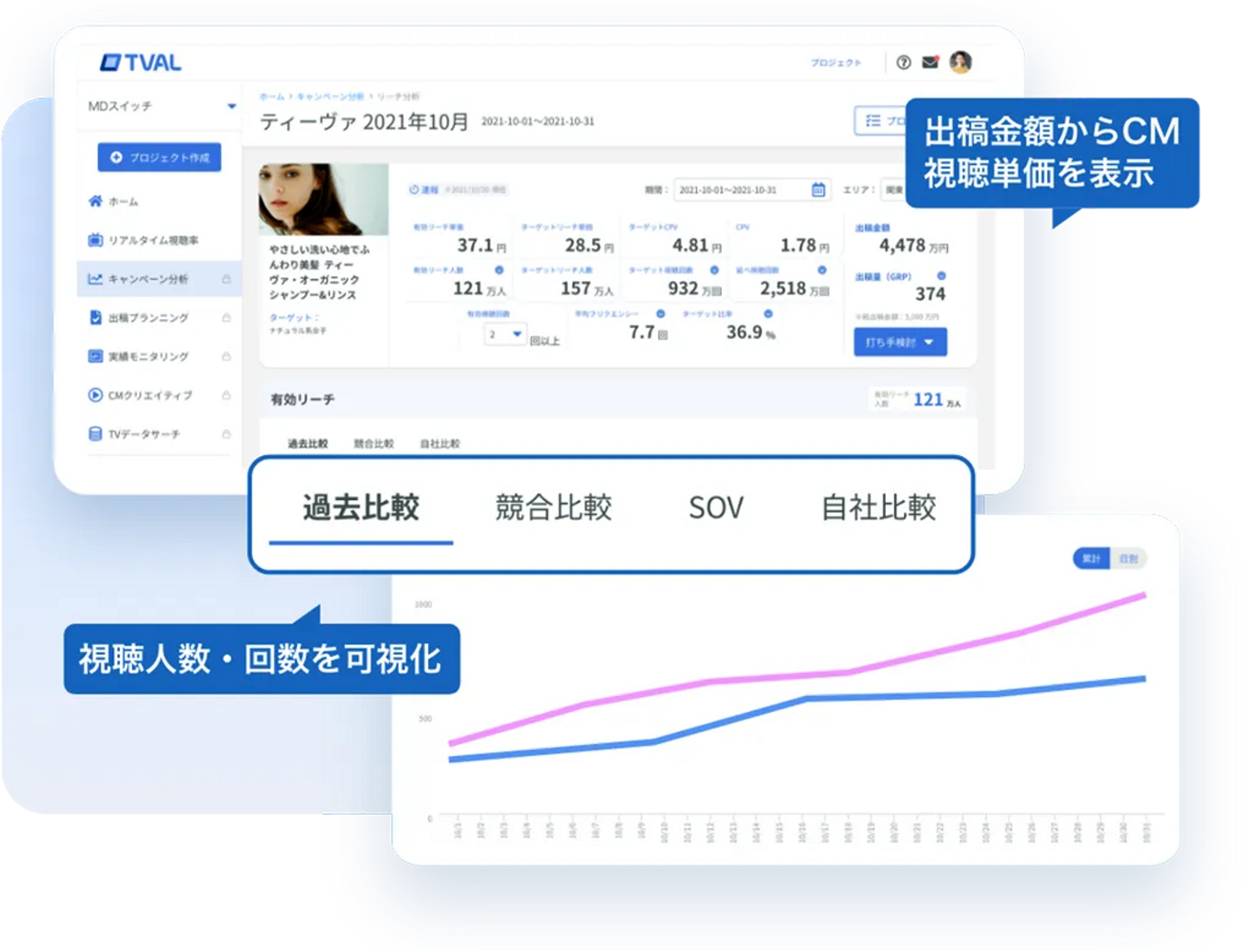 TVALとは、テレビCMの効果改善ができるSaaSツールです。TVALで具体的に実現できることとしては、