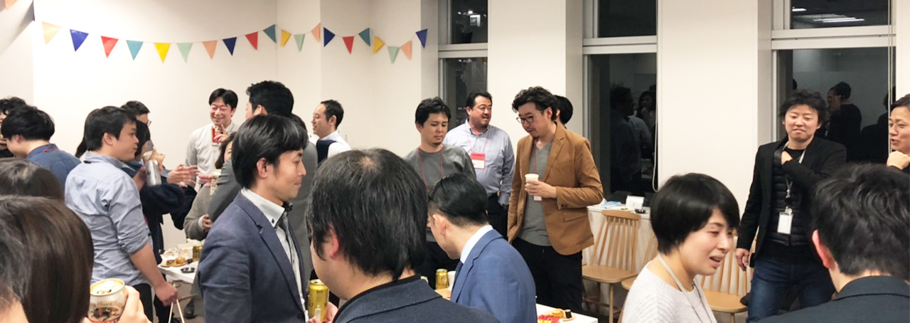 プログラムと言っても乾杯や短い挨拶などで、終始フリータイムがメイン。普段はMTGや応接などに使用しているFREE ROOMですが、この日は熱気ムンムン、大盛り上がりとなりました。
