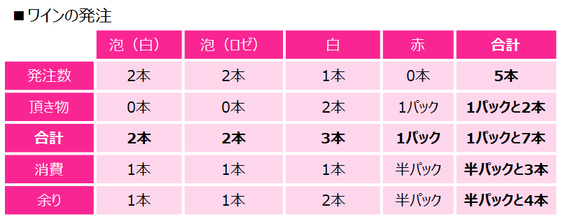 お酒が足りなかった場合の保険としてワインも発注しました。
