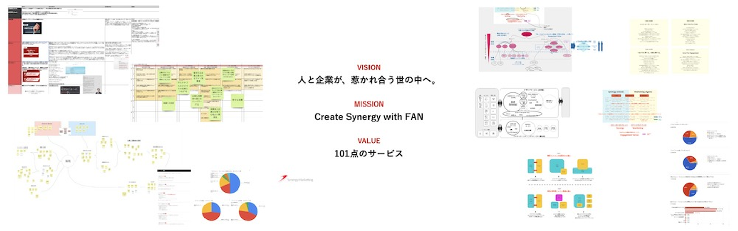 プロジェクトでは、過去20年にわたる企業活動やブランドメッセージを紐解きながら企業の不変の価値観を整理を行いました。社内外のステークホルダーへのデプスインタビューから得たインサイトから現在の"シナジーマーケティング像"を浮き彫りにしました。また、これからの未来を作る事業ポートフォリオやビジネスモデルについて概念の構造化や言語化を行いました。