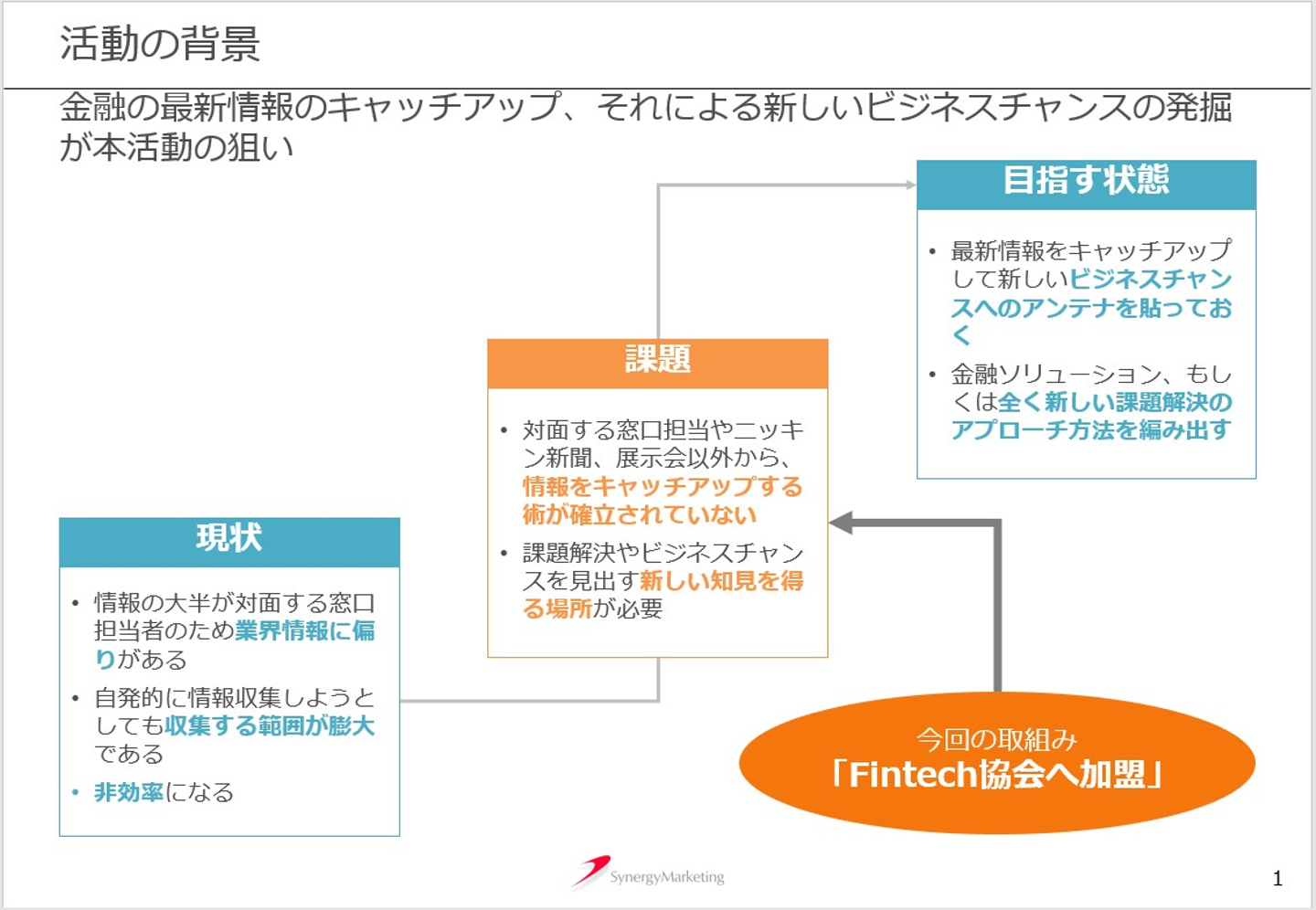 協会に所属したのは、常に新しいソリューションの種が無いと、これからこのビジネスを大きく拡大しいくことはできない危機感を持っていたからです。私たちは銀行業務の中で「融資」、いわゆるローンの獲得拡大という支援領域において非常に強みを持っています。