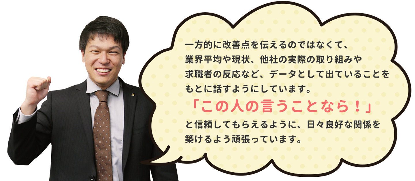 企業と求人メディアとの中立な立場として、お互いの間を取り持つことも大切な役割です。