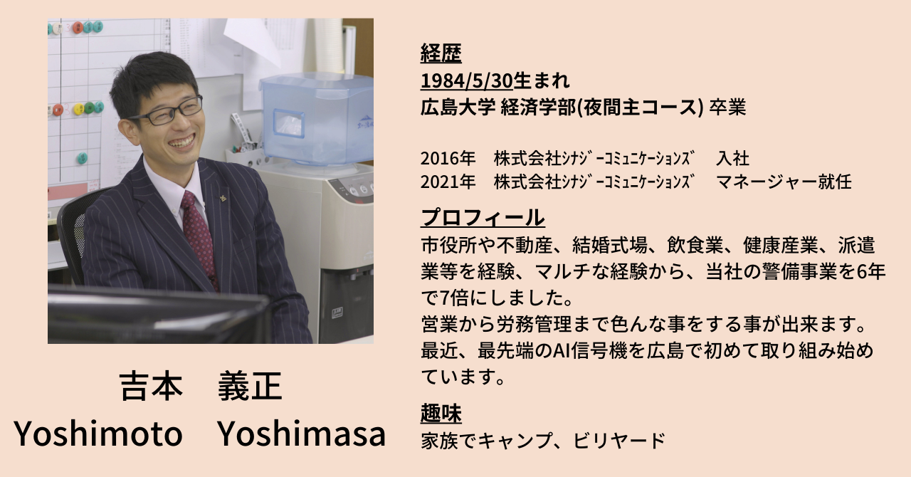 今回は入社8年目、シナジーコミュニケーションズの吉本 義正(よしもと よしまさ)さんにお話をお伺いしました!