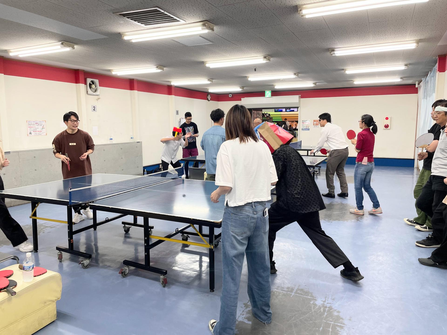 これはつい先月企画したイベントで、珍しく社外で就業時間外に行いました。一風変わった卓球の試合やチームプレイを通じて親睦を深めてもらいました。