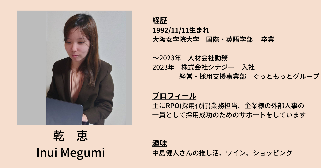今回は2023年10月に入社した乾 恵(いぬい めぐみ)さんにお話を聞きました。