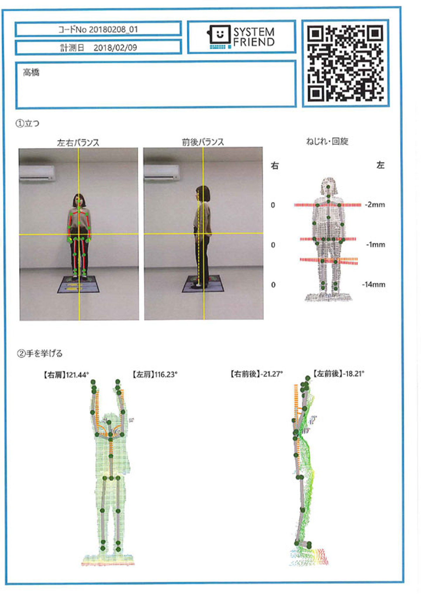 計測結果は映像でも記録され帳票で出力されるので、すぐに確認することができます。ちょっと恥ずかしいのですが…私の計測結果をお見せします…!