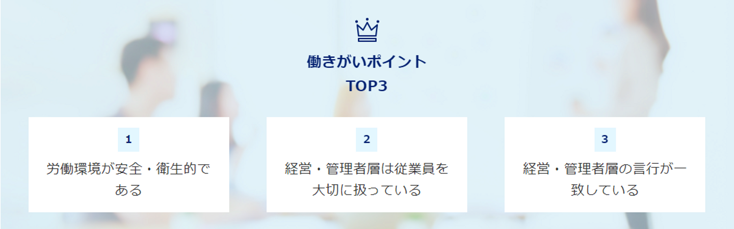 (※従業員へのアンケート結果から、同規模の他社と比較し相対的に強みといえる特徴3点です。)