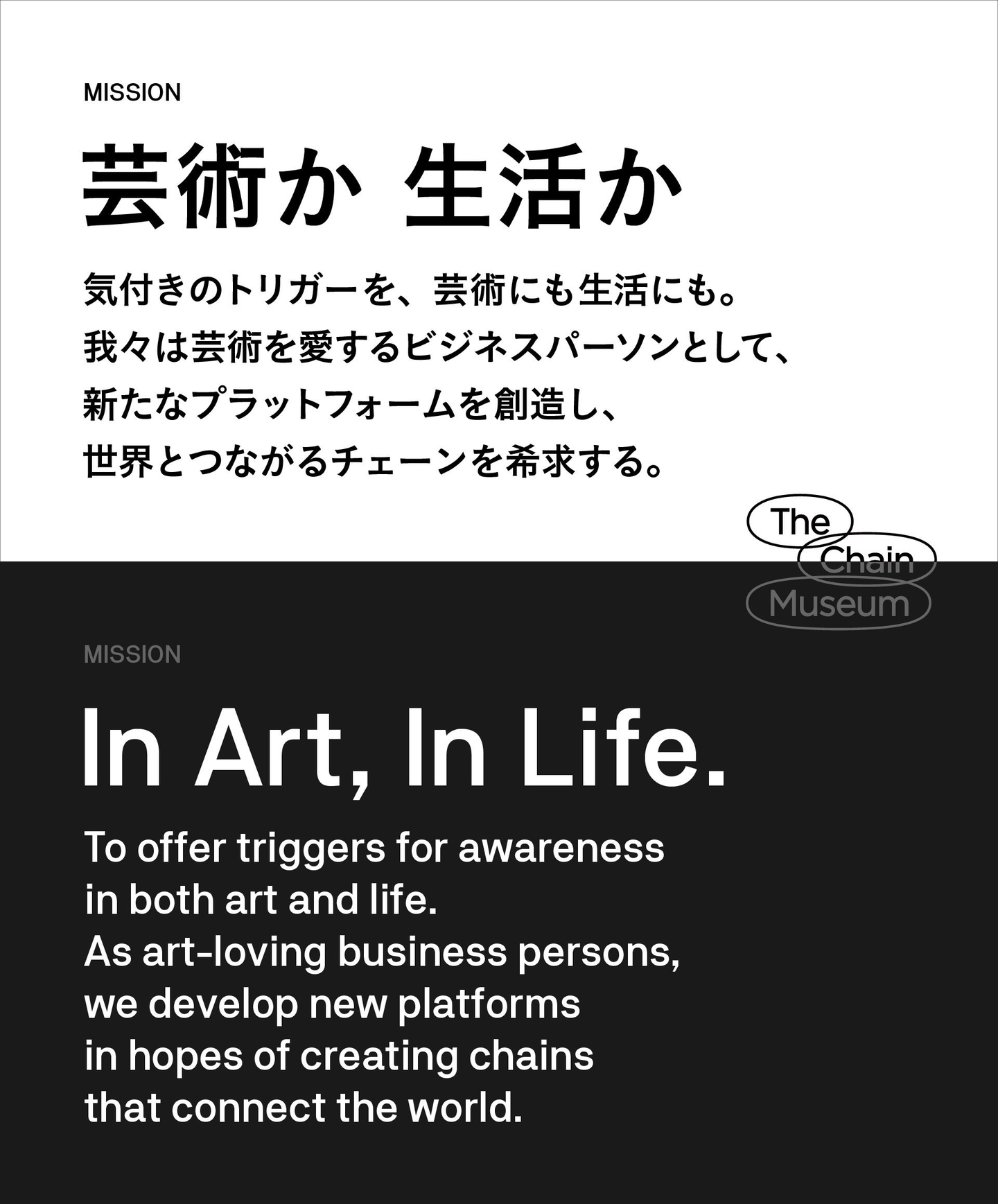 The Chain Museumは、芸術、そして生活の両方にプラットフォームを提供する企業としての在り方と目指すべき姿を定め、新たなミッションの元に成長し続けます。