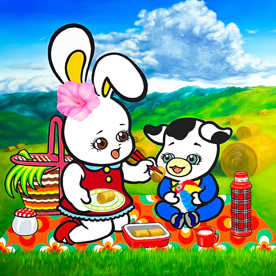 1997年東京都生まれ。2020年東京藝術大学美術学部絵画科油画専攻卒業。「文化の継承・変異」をテーマに、固有の昔話に登場する寓話や風習を自らつくり直し、文化の継承ツールとして、物語をポップに昭和レトロな色彩で表現する。