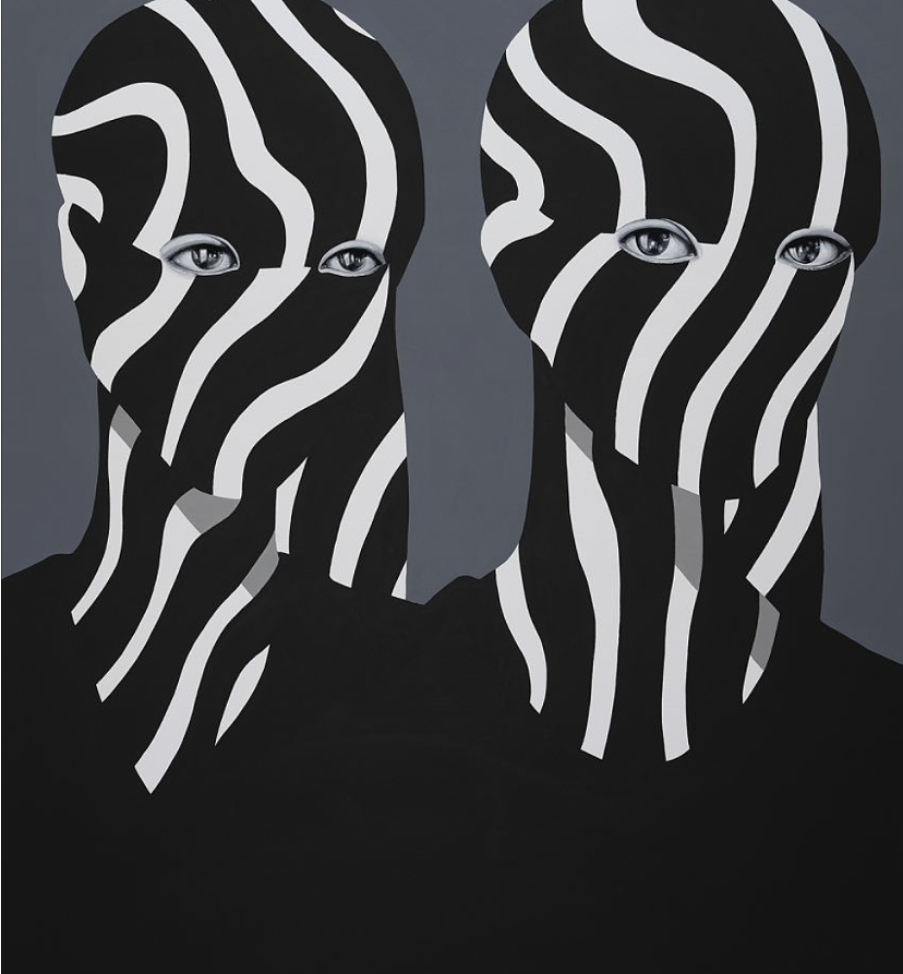 これまでの制作では、SNSやブログなどインターネット上にアップロードされている無数のセルフィーやスナップなどの顔写真から、ビデオプロジェクターを使い「目」だけを正確にトレースし、肖像の輪郭はモデルとした実際の人物から、人種や性別、髪型、体型などを全く別の人間に描き変えることで、インターネットの匿名性や情報の不確かさを表現した「現代人の肖像画」を発表してきました。