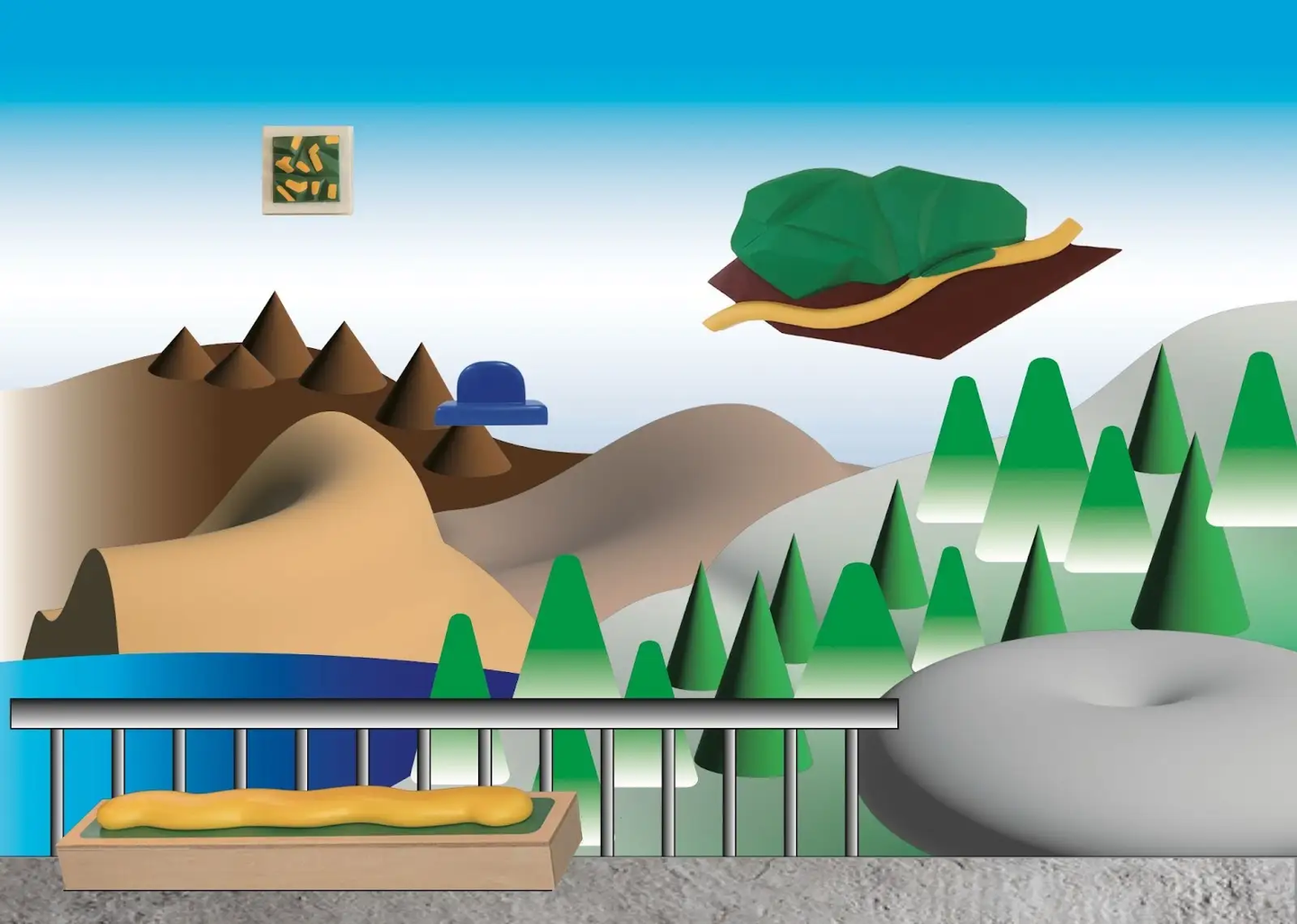 ダムや水門などの巨大人工物、もっと身近なところで言うと、噴水、花壇といった人の手が加わった風景をモチーフに彫刻をつくっています。