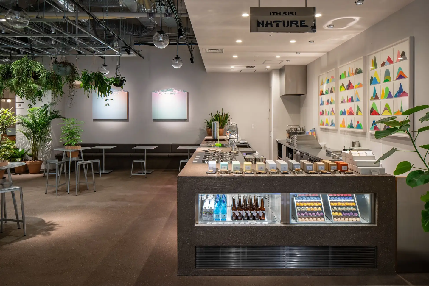 会場となるCAFE &GREEN SHOP「(THISIS)NATURE」は、フレッシュなグリーン&フラワーを取り扱うFLOWER & GREEN SHOPと乳製品を一切使用しない全てがプラントベースの生ジェラート等が楽しめるCAFEで構成された店舗です。
