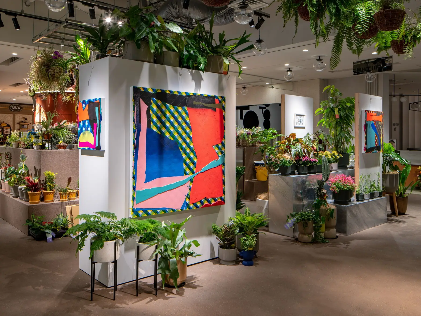 個性豊かなグリーンやフラワーに囲まれた空間で、現代アートをお楽しみいただけます。