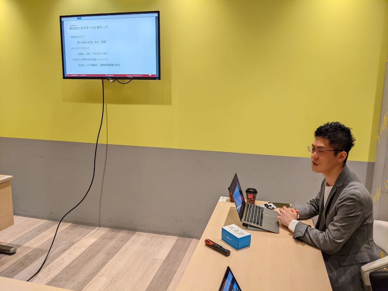—— 続いて、先輩社員からの激励の言葉として、エンジニアの鈴木より挨拶がありました。