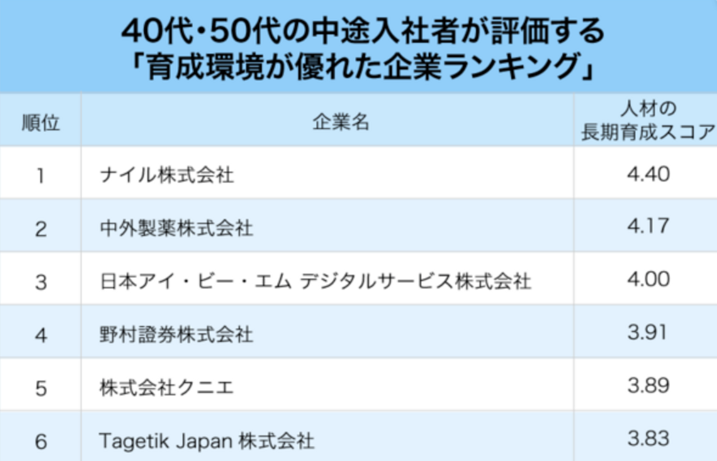 40代・50代の中途入社者が評価する「育成環境が優れた企業」ランキング【ベスト30・完全版】