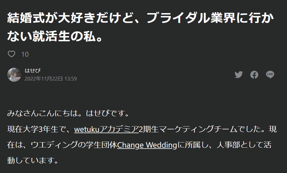▼note「結婚式が大好きだけど、ブライダル業界に行かない就活生の私。」