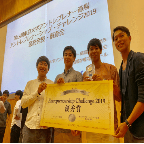 私・井坂・原と、1号社員となった熊野の4人は、アントレ道場を受講しながら、ビジネスアイデアを出しあっていました。そのときはまだ、半ば授業の一環といった感覚でした。私たちが本格的に起業を意識するきっかけになったのが、アントレ道場の延長で開催された、東京大学主催のビジネスコンテストです。このコンテストに、当時のメンバー4人で出場しました。そしてありがたいことに、優秀賞を受賞しました。この成功体験が、私たちに火をつけたのです。