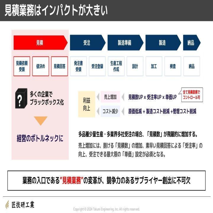 見積業務は、工場の売上や利益を大きく左右する、経営の根幹である。