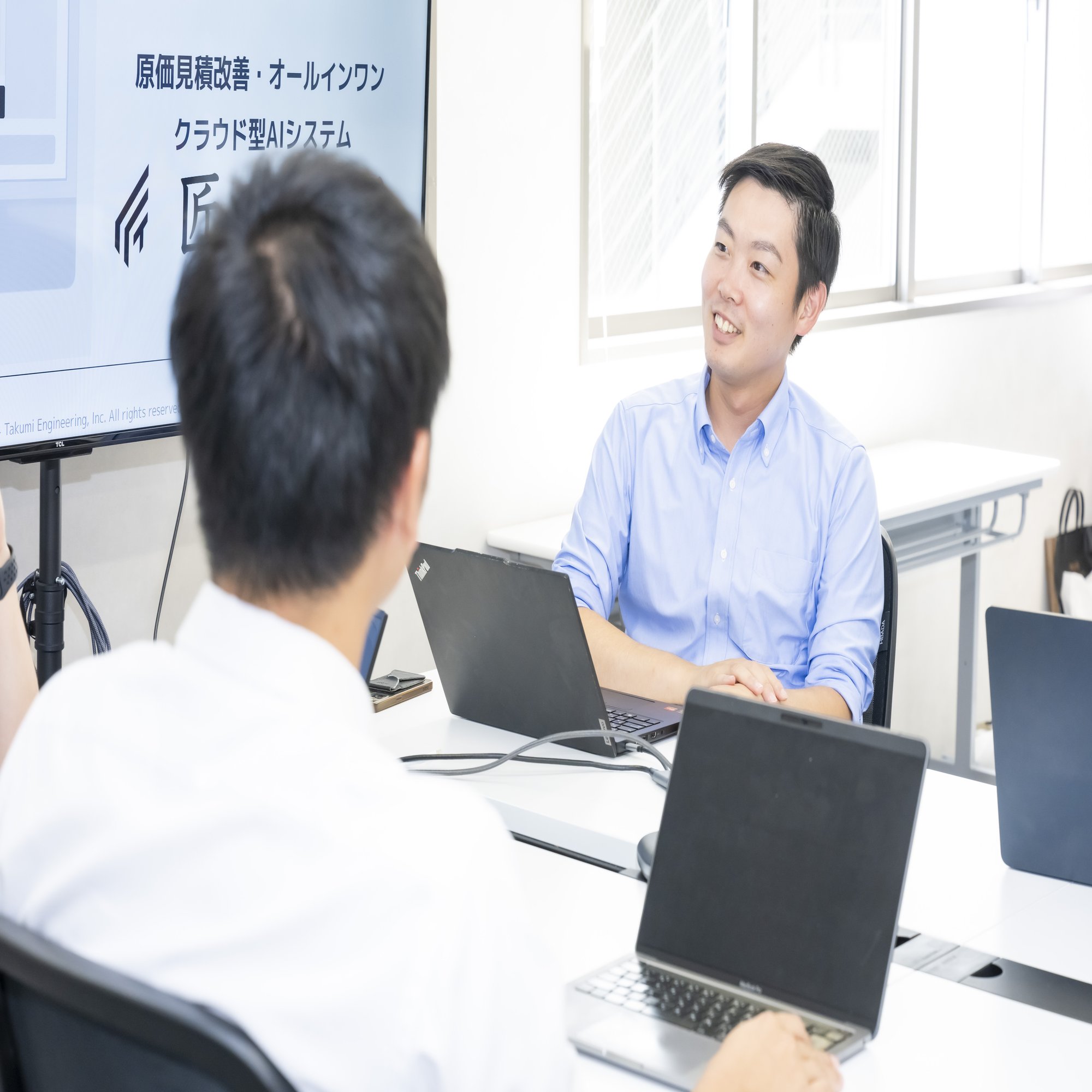加えて、匠技研工業の魅力として感じるのが、「大企業での経験が活きやすい」ということです。社内調整や仕事の進め方については、大企業で学んだことが活きる機会が多いと感じます。SaaSといういわゆる「今風」のサービスを製造業界の方々に分かりやすく伝えるには、大企業で働いていた経験が十分活かせます。大企業からスタートアップに転職する人も増えてきてはいるものの、まだまだ絶対数としては少ないので、貴重な人材です。