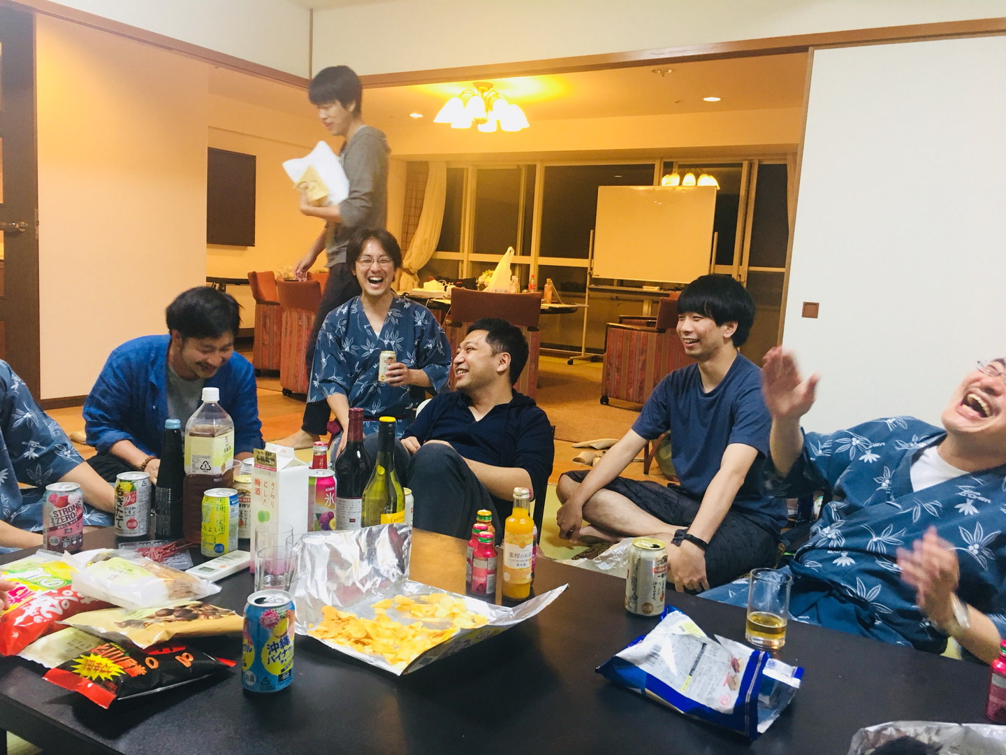(夜、皆で飲んでいるときの様子。何について話して笑っていたか、もう思い出せない(汗))
