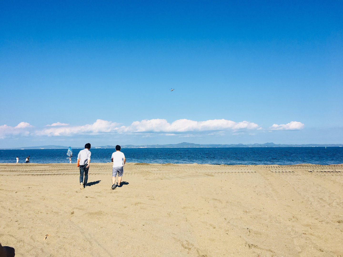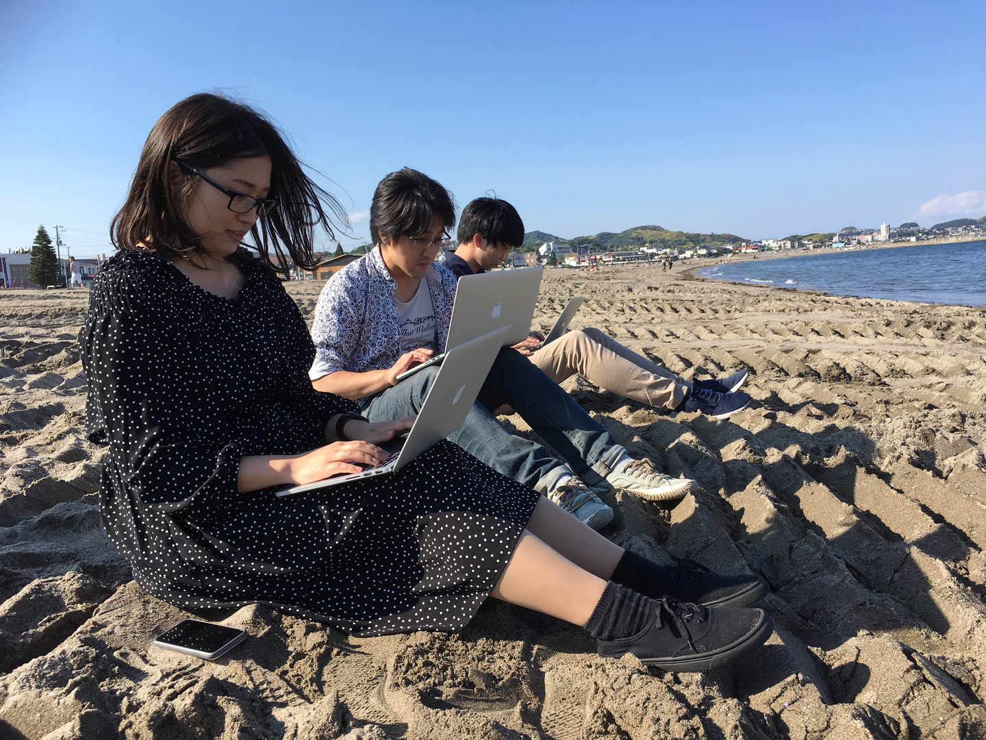(砂浜で開発するメンバー。MBPに砂が入らんのか・・・)
