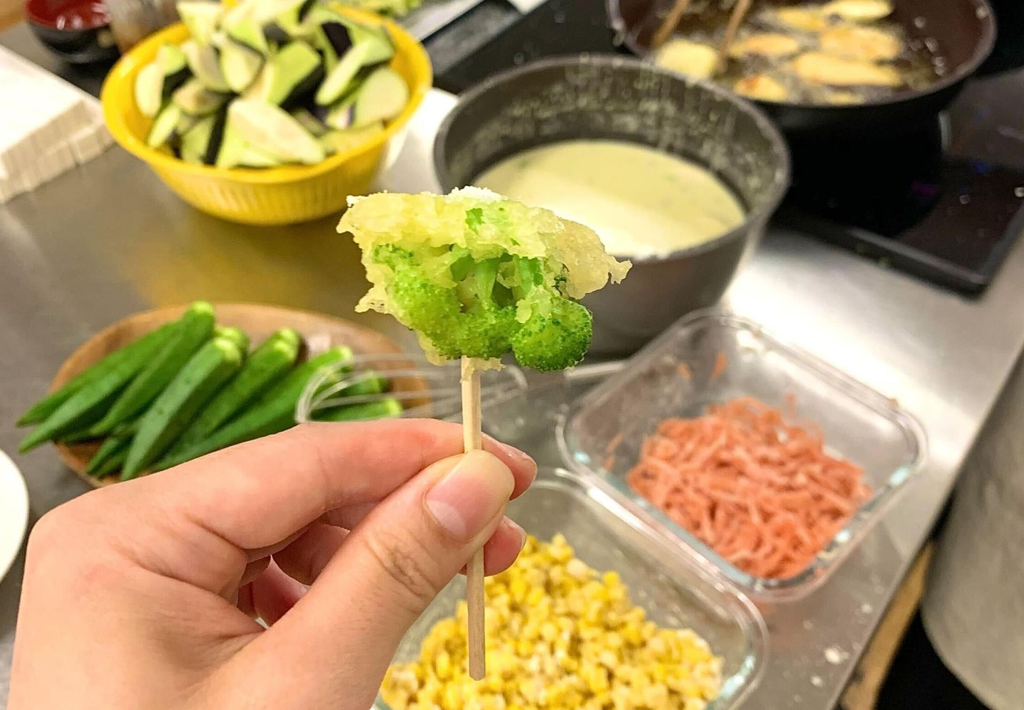 天ぷらは大阪メンバー瀧本さんのお手製!ブロッコリーの天ぷら、美味しかったです😋
