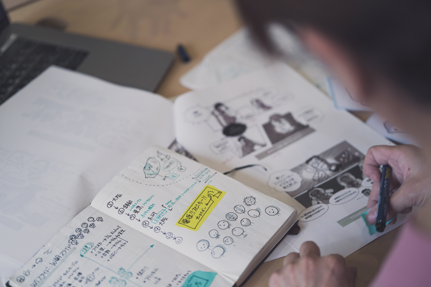 ADしているとき、クライアントの前でWebサイトのラフなど描いていったら、みんなが納得してくれたじゃないかと。ADとしてきれいなものをつくるのも楽しいですが、その途中段階のみんなでコミュニケーションを取りながら、考えをアウトプットするときも、描くということは同じだったと気づいて、「描くこと」を自分の活動のベースにしようと思いました。