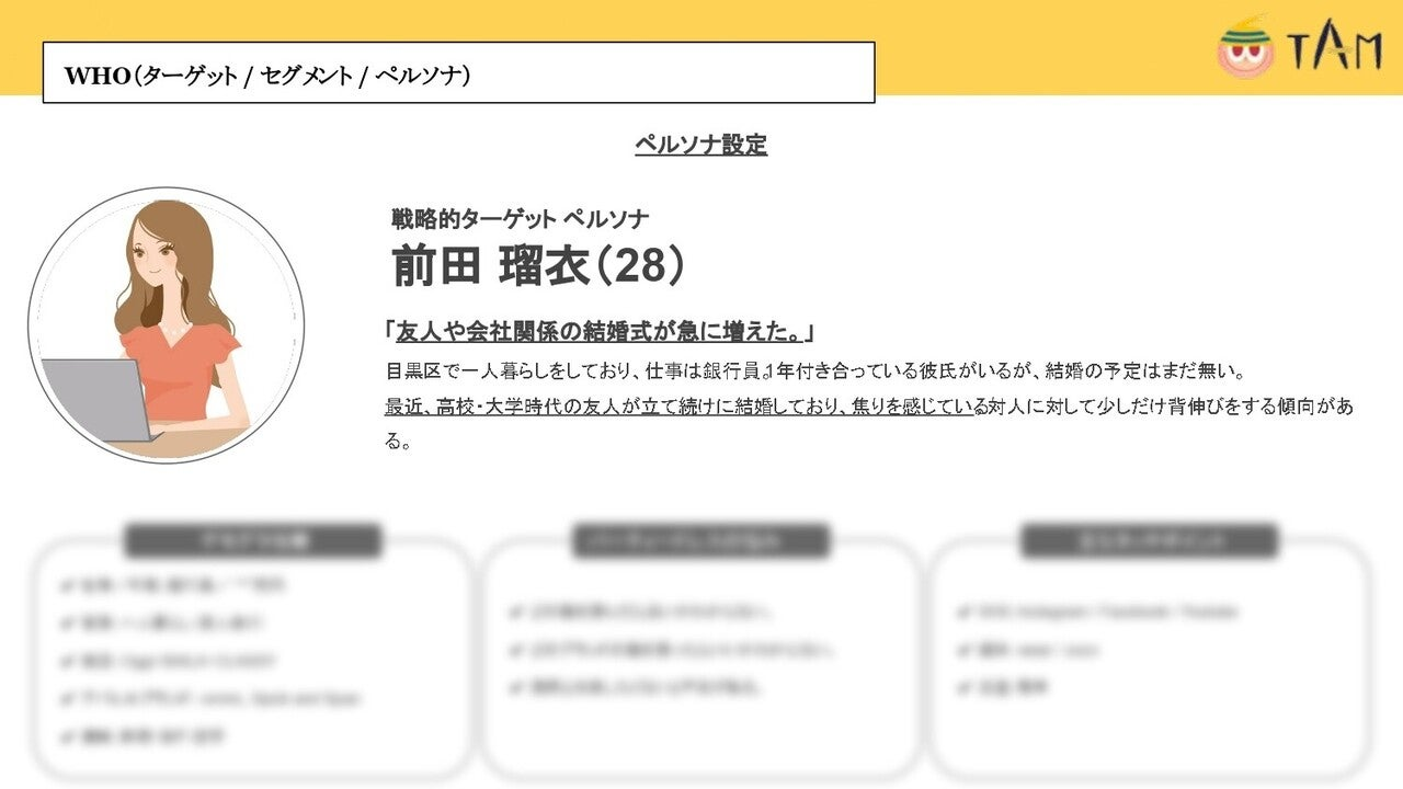 はい。今回は大枠「若い人」というのはあったんですが、それを顧客像にまで落とし込むところは、クライアントと相談しながらわれわれでやってます。今回で言えば「前田瑠偉ちゃん」、28歳。