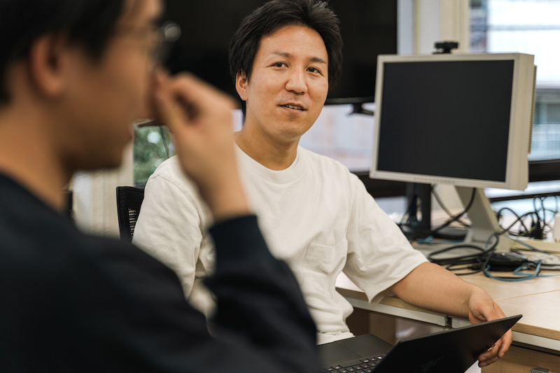 どんな仕組みで、どのように若手社員のキャリア形成に役立っているのでしょうか? 爲廣慎二社長とデザインテクノロジーチームのリーダー角谷仁さん、若手社員の中村颯介さんにお話を伺います。