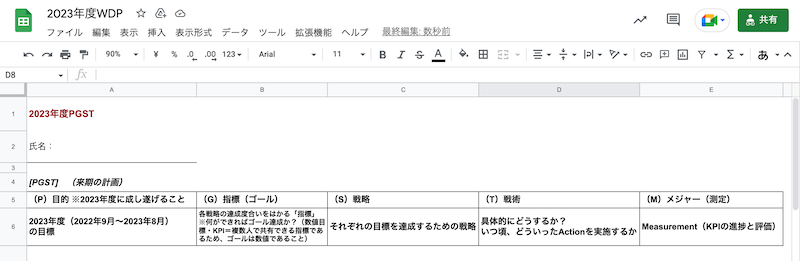 爲廣:「WDP」の「W=Work」は今期の成果、「DP=Development Plan」 は来期の計画です。今・来期の「PGST(目的、指標、戦略、戦術)」を書き込むシートに、各自の「キャリアプラン」のシートを付け加えたのが、TAM流のWDPになっています。