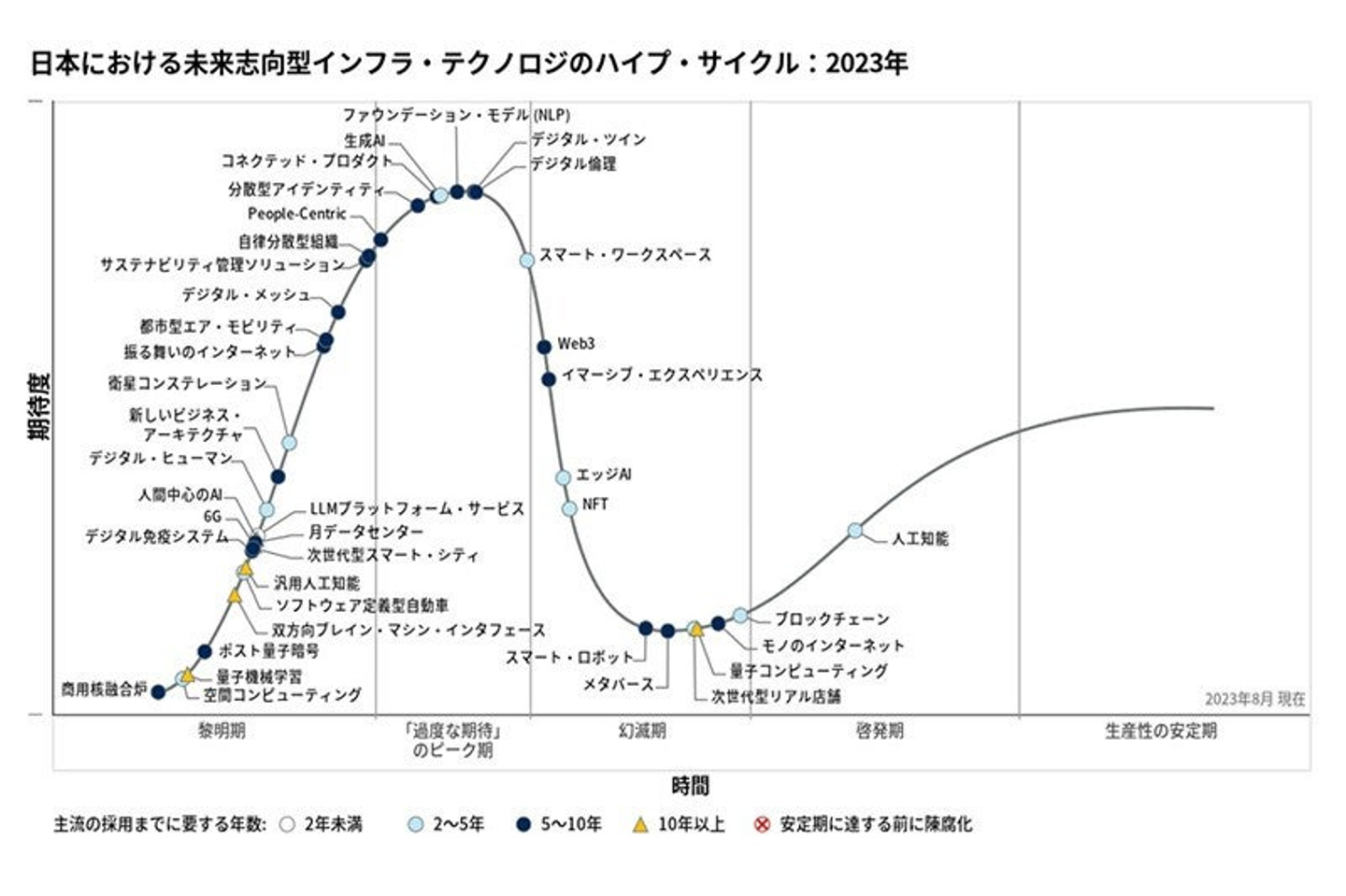 社会全体で見ても、同じような雰囲気を感じます。有名なガートナー社の「ハイプ・サイクル」の2023年版では生成AIが「過度な期待」と示されています。しかし、もしかしたらもう幻滅期すら通り越し、啓発期に入っているのかもしれません。
