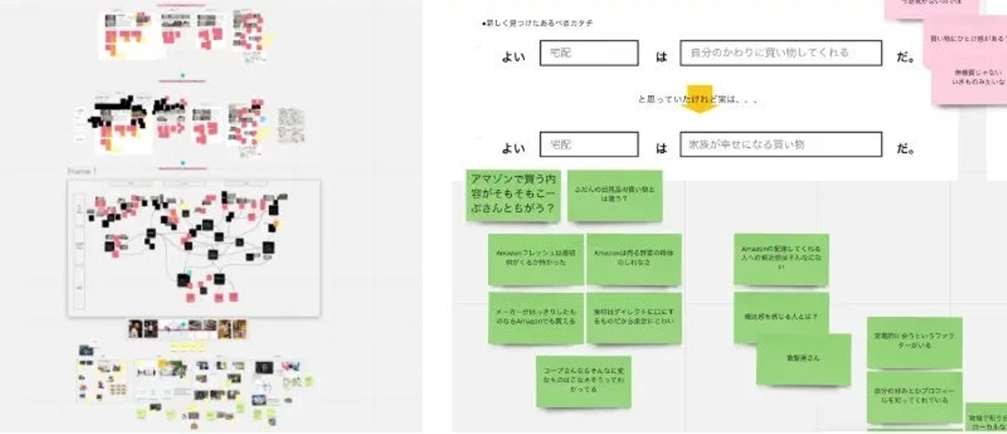 そこでプロジェクトの進め方をガラリと変えました。他社さんを含め、総勢25人くらいのメンバーが関わっていたのですが、とにかくコミュニケーションを頻繁に取ることに。お互いのプロフィールを共有したり、ディープインタビューをし合ったり、コープこうべ様の未来像を個々人がプレゼンして、それを絵にしてみたり。4カ月くらい、ありとあらゆることをやりました。