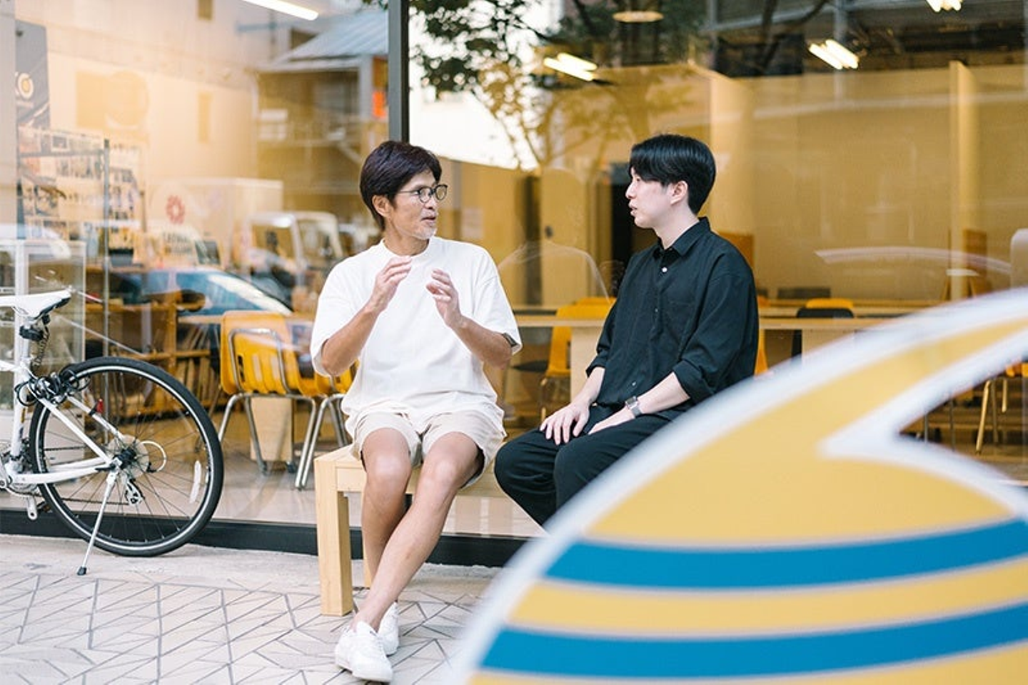 生成AIの新規事業に取り組むデジタルエージェンシーTAMの代表、爲廣慎二さん(写真左)、同社のAIチーム「TAM AI Lab」リーダーの佐川史弥さん(写真右)と一緒に考えます。
