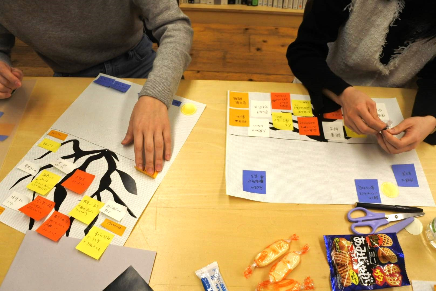 つくりながら参加者同士で対話をし、自分を木に見立てたシートを完成させます。