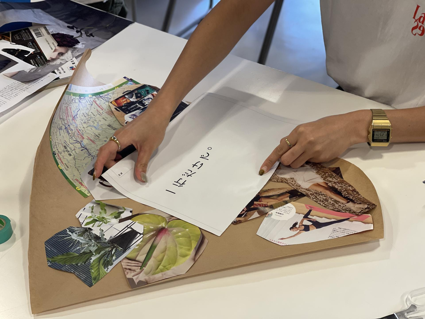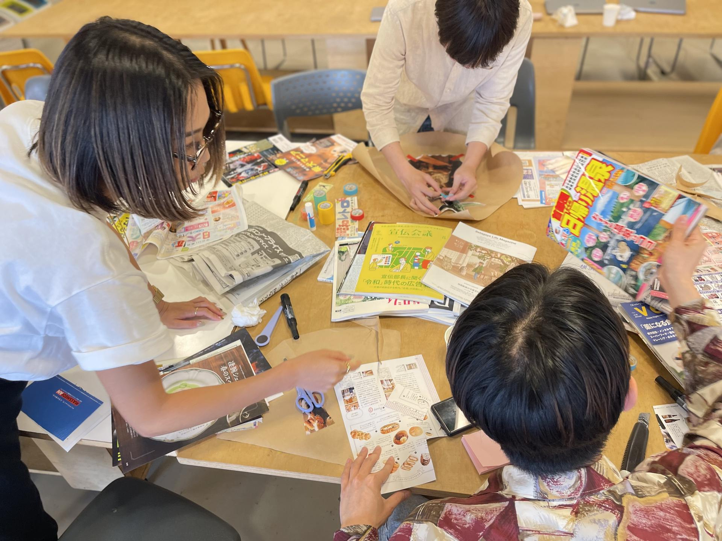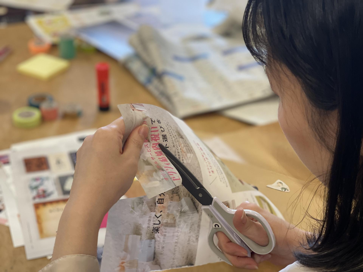 ランダムなジャンルの雑誌を手に取りながら、切って貼っていきます。