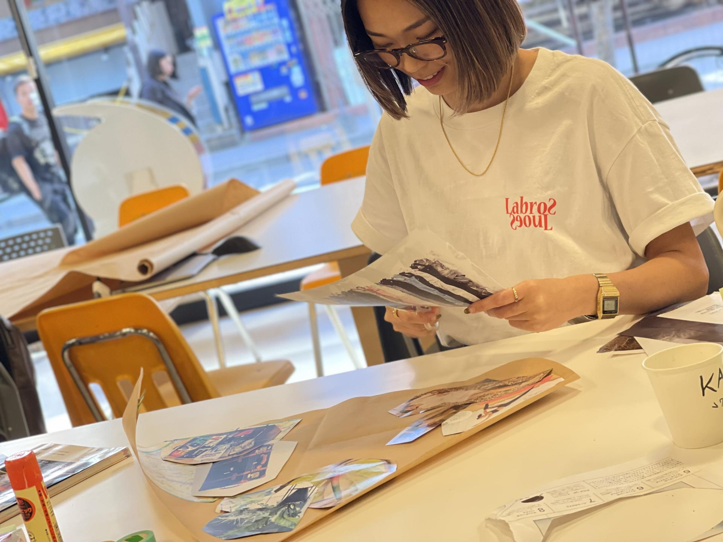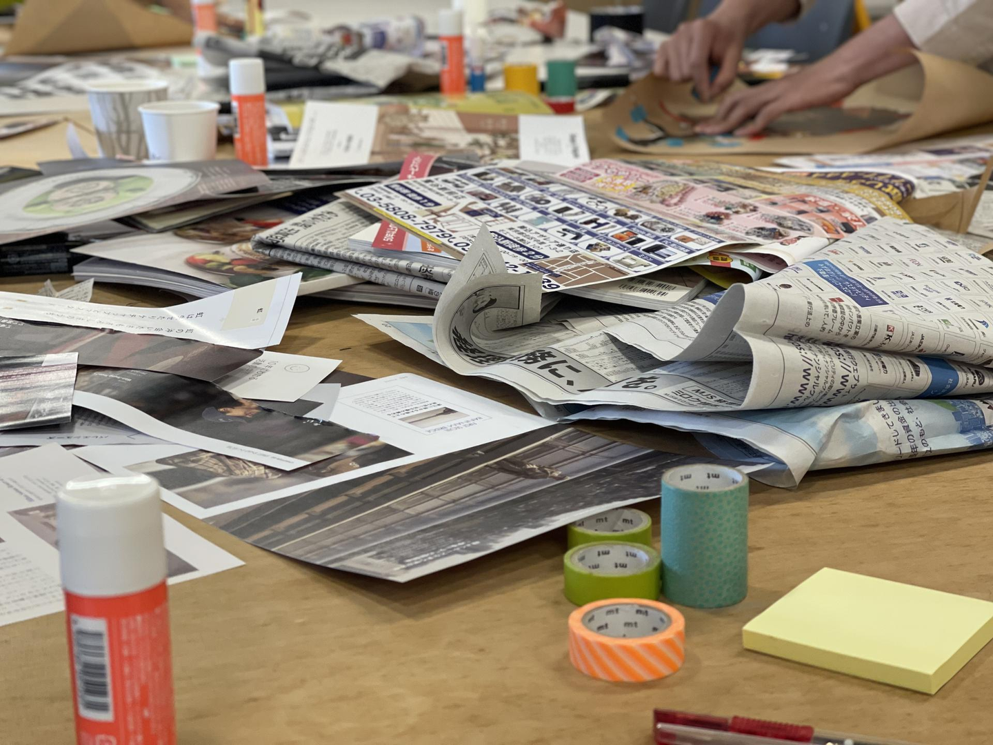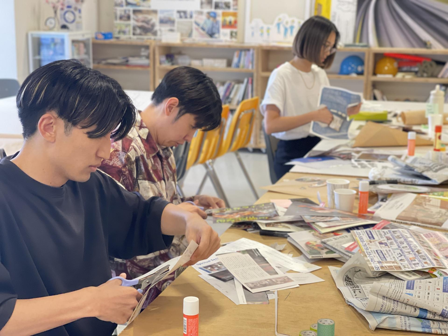 ランダムなジャンルの雑誌を手に取りながら、切って貼っていきます。