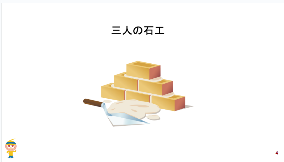 ドラッカーの著書で書かれている有名な石工(レンガ職人)の話。話の中では、石工たちに「あなたは何をしているのですか?」と聞く神父さんにこう答えたそうな。