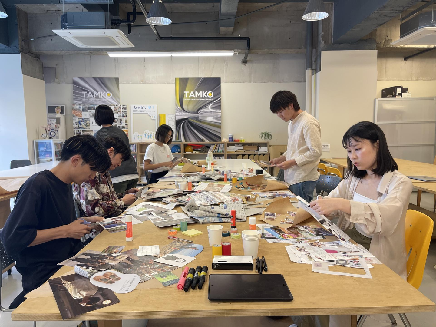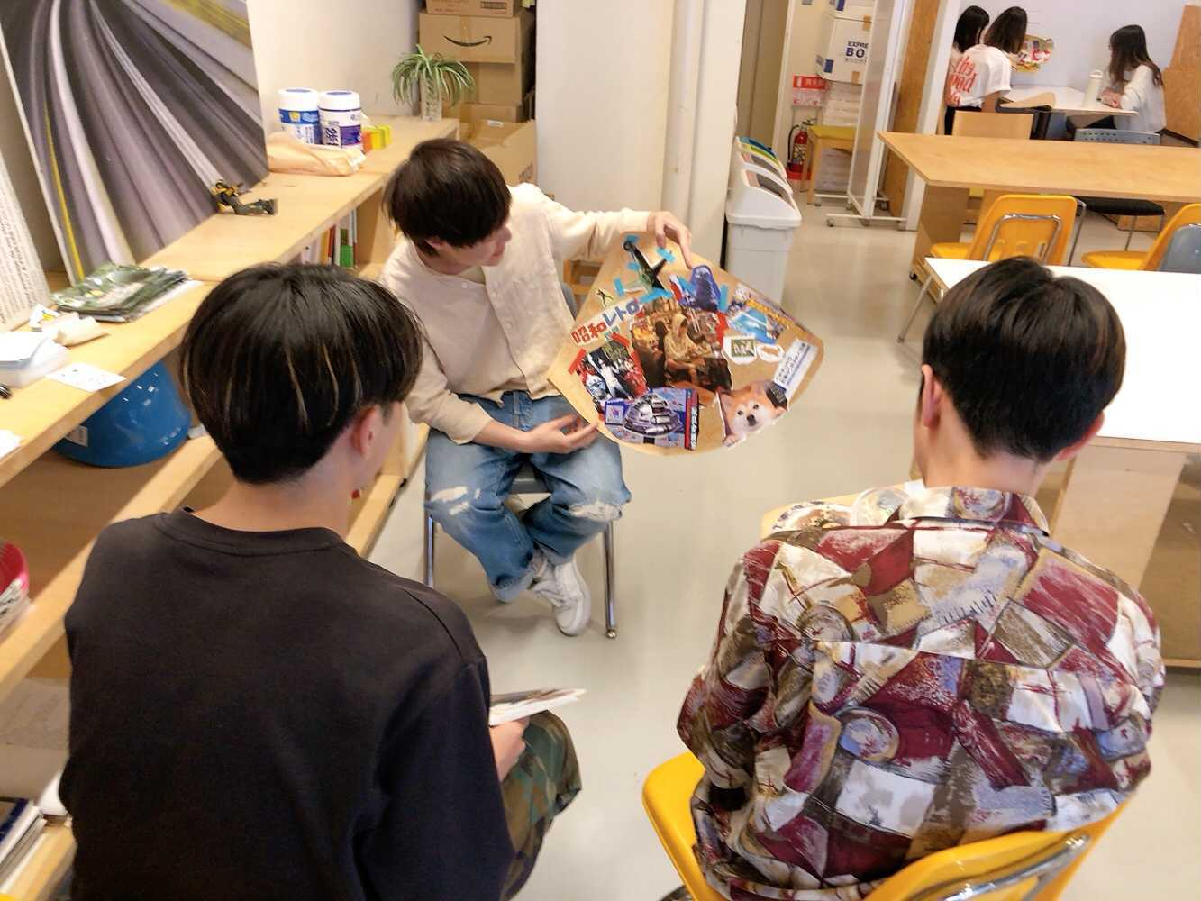 コラージュワークとは…雑誌や新聞を直感をもとに自由に切り抜き、1枚の紙にペタペタ。自己表現として作品を作り、語るもの。