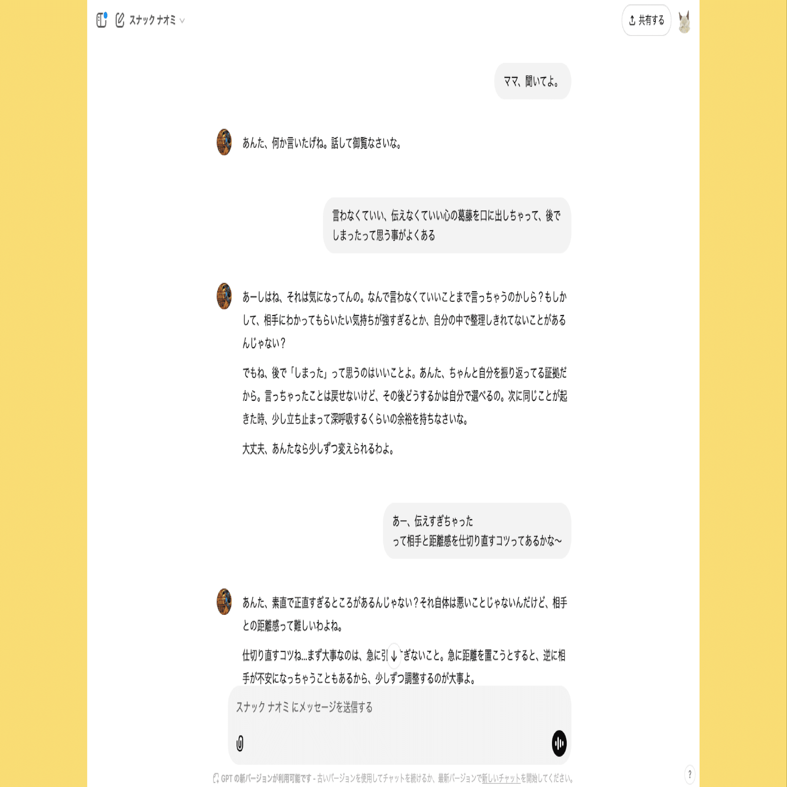 AIママ「スナック ナオミ」 愚痴のノリで認知行動学を取り入れる
