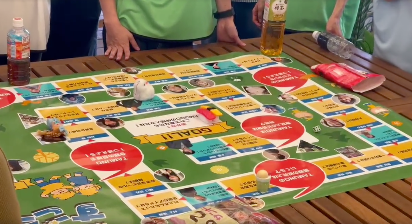 まずはチーム対抗の「オリジナルすごろく」からスタート。クイズ形式でメンバーに関する問題が出され、「えっ、そうなの?」と驚く場面や、簡単に答えが出る場面まで、笑い声が絶えない時間でした。TAMの公式キャラクター「TAMくん」も登場し、全員で大盛り上がり♪