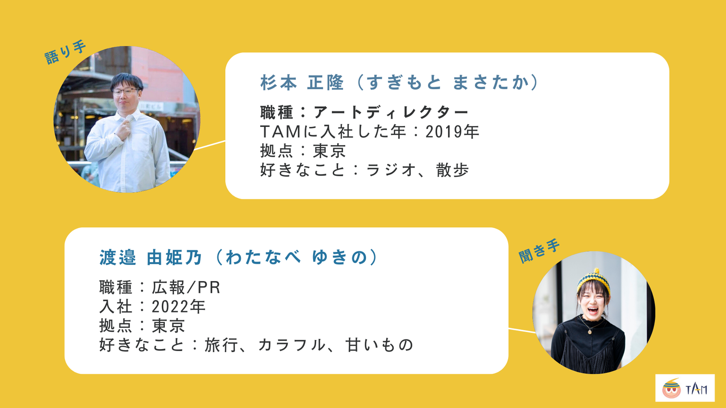 TAMメンバーにインタビューする「TAMのお仕事図鑑」シリーズ。今回はアートディレクターの杉本さんに話を伺いました。