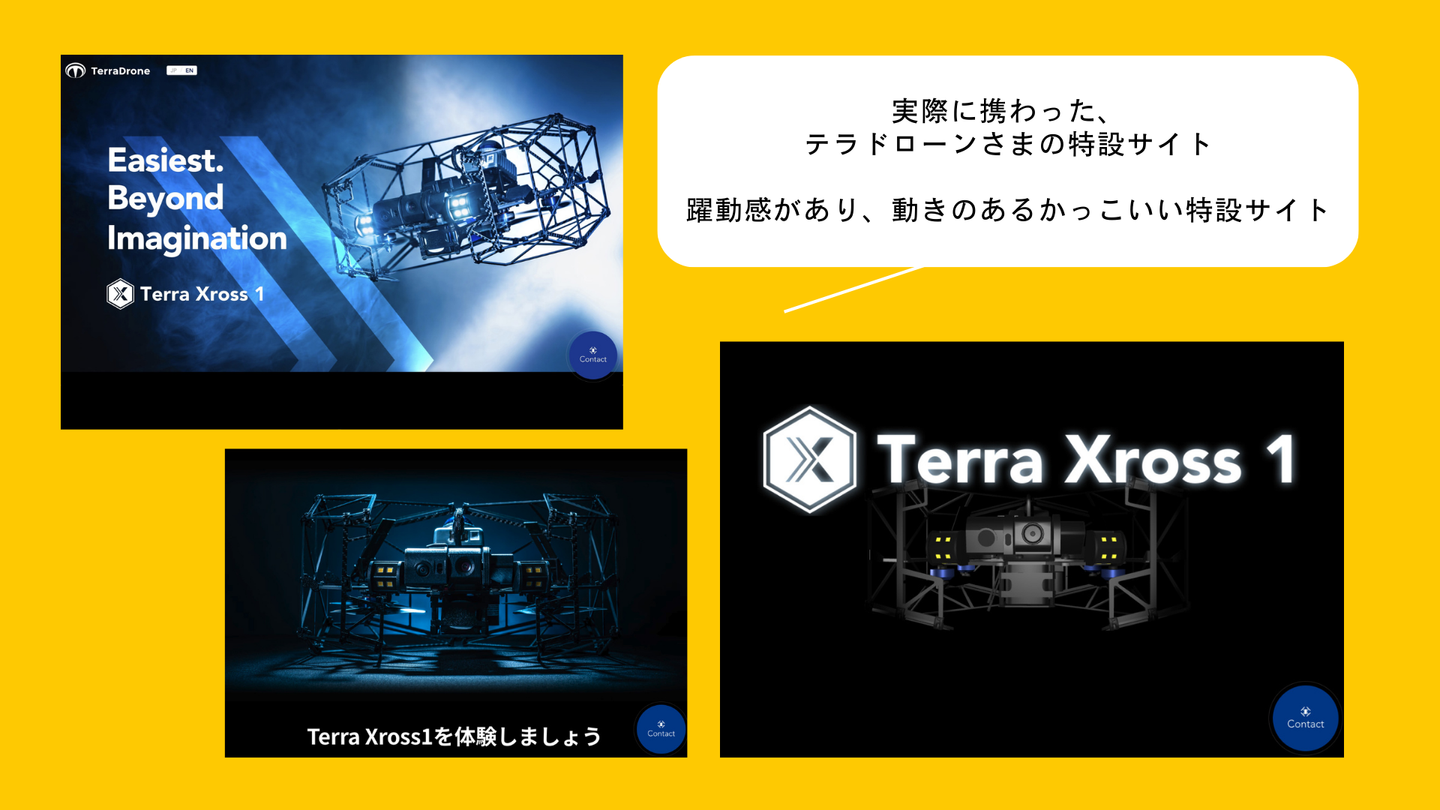 直近だとテラドローンさんとのお仕事は、個人的にも思い出深いプロジェクトでした。社内公募されていて、TAMの中で手をあげたメンバーでチームを組み2〜3ヶ月ほどで制作しました。