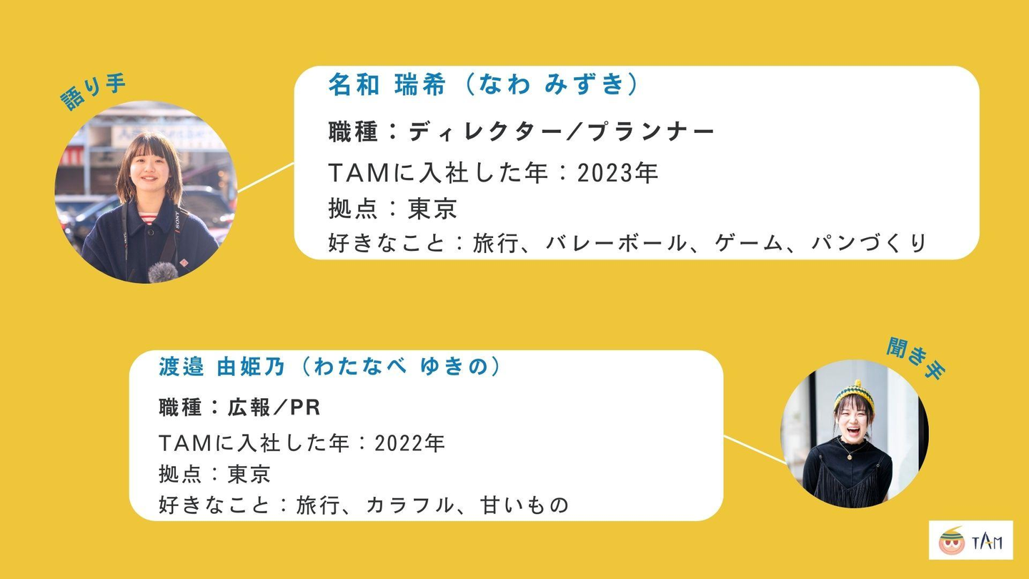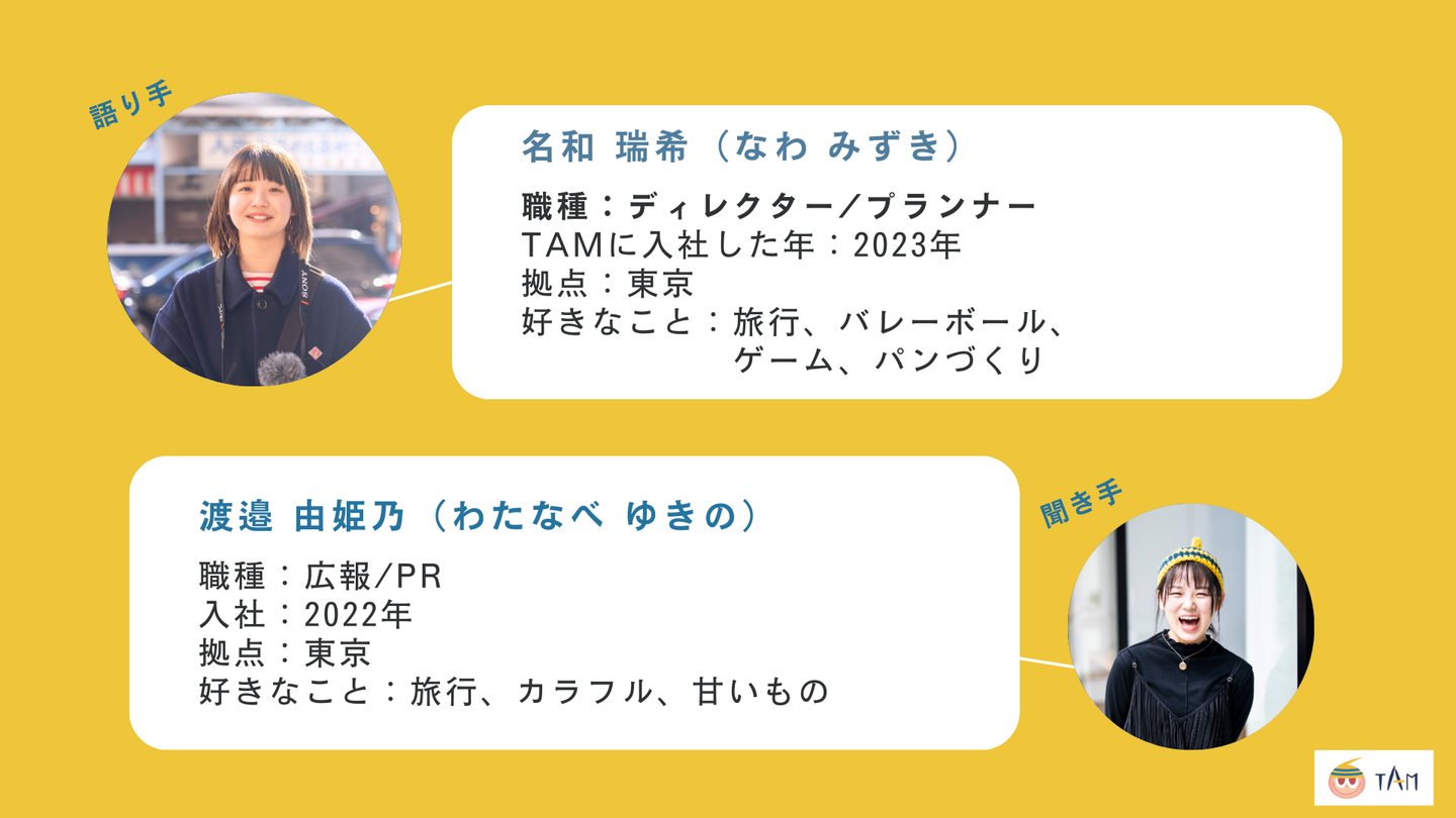 TAMメンバーにインタビューする「TAMのお仕事図鑑」シリーズ。今回は2023年に新卒入社し、今年で3年目を迎えるディレクター/プランナーの名和ちゃんに話を聞きました。