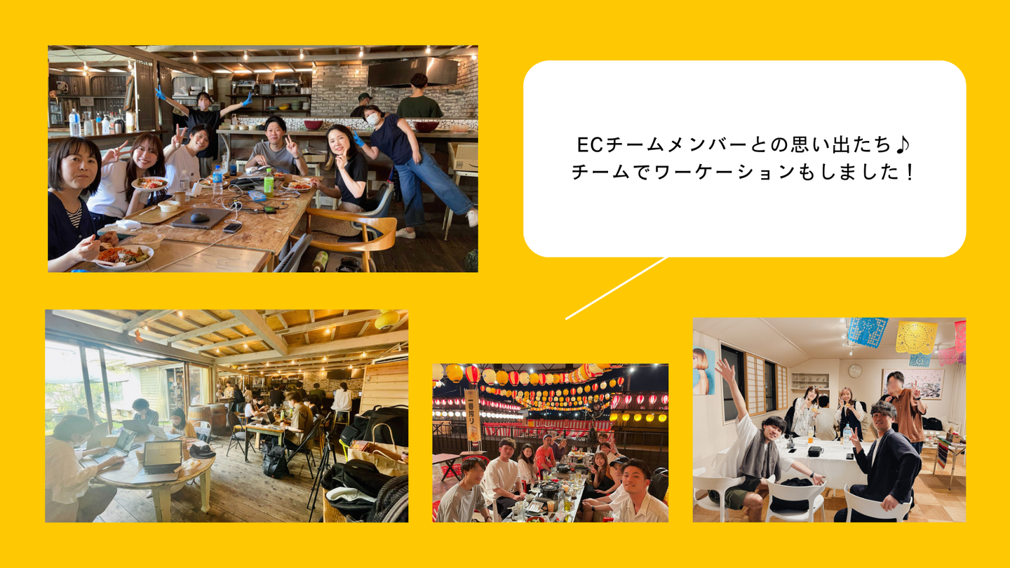 ECチームで代表をしている引野さんと1on1をすると「今、楽しい?」「やりたいことない?」って必ず聞いてくれるので、チーム内の距離感も近くお仕事の困りごとをフランクに相談できます。
