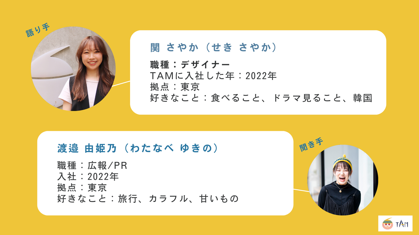 TAMメンバーにインタビューする「TAMのお仕事図鑑」シリーズ。今回は、入社3年目のデザイナー関さんにお話しを聞きました。関さんは学生の頃から「空間デザイン」に興味があり、空間をプロデュースするウェディングプランナーとして社会人のキャリアをスタート。自身の働き方やキャリアを考えていく中で、Webデザイナーへの転身を決意。未経験デザイナーとして、TAMに入社しました。