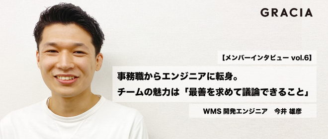 多くの方にGraciaの魅力を知っていただくための社員インタビュー、今回はWMS(倉庫管理システム)開発において設計・実装を担当する今井 雄彦(いまい・かつひこ)さんにお話を伺いました!CTOの林さん、前職から交流があるエンジニアの竹内将悟さんとのグループセッション形式で実施しています◎[プロフィール]今井 雄彦(いまい・かつひこ)1993年3月24日生まれ。大学卒業後、神奈川県に入庁。税金や労働関連の業務に従事。その後、エンジニアとしてのキャリアをスタートし、エンタメ系やファッションECのエンジニアを経験。株式会社Graciaには2021年2月から業務委託としてコミットを開始し、5月に...