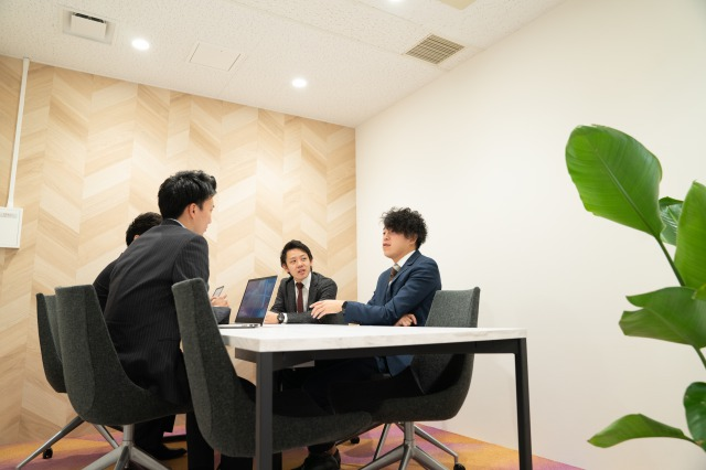 こちらでは主に会議やお客様へのコンサルティングに使用されます。シンプルなデザインの部屋が落ち着きますよね。お客様と向き合う良い空間です。
