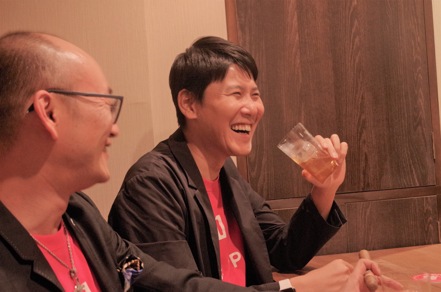 リクルートサイト2023にも展開中のこちらの対談、役員陣のダークな雰囲気を醸し出すべく雰囲気のいいBarで撮影してみました。(※感染対策の上、お茶での撮影をしております。そして皆様お気づきかと思いますが葉巻には火がついておりません。爆)